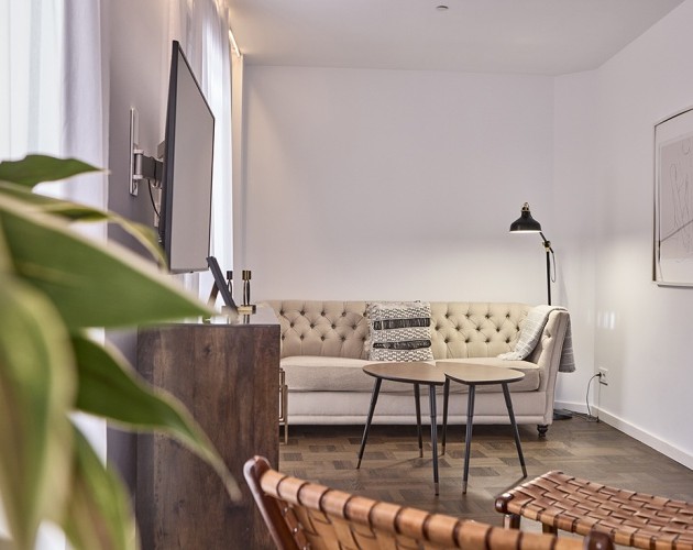 El apartamento incluye SmartTV con canales internacionales, WiFi gratuito de alta velocidad, conexión Ethernet, climatización individual, baño con calefacción por suelo radiante y artículos de aseo gratuitos.