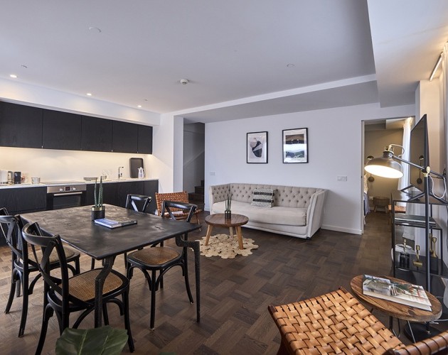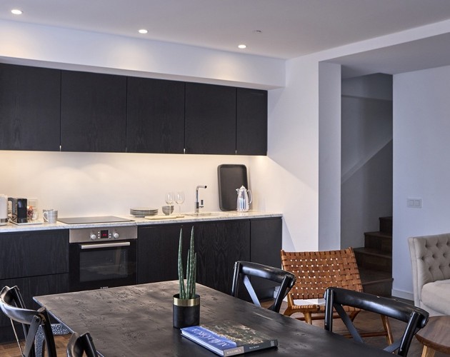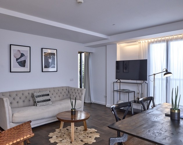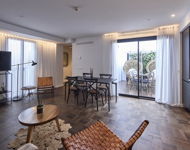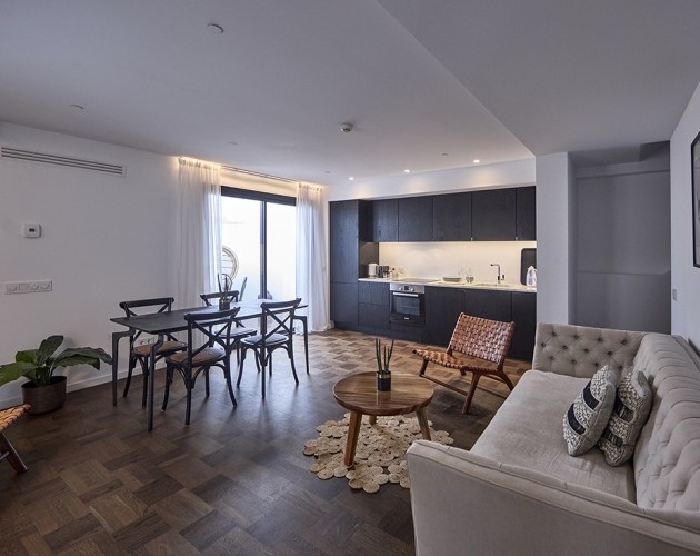 Este amplio apartamento dúplex es ideal para familias o grupos pequeños que buscan privacidad adicional, también adecuado para grupos exclusivos o reuniones corporativas íntimas. Cuenta con dos dormitorios equipados con camas king-size, distribuidos en dos plantas. El salón dispone de un sofá cama adecuado para dos niños o una pareja adicional.