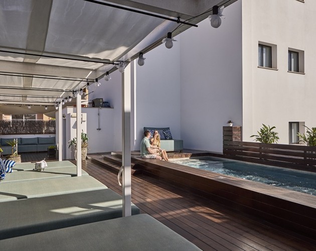 Refréscate en nuestra agradable piscina exterior, un espacio diseñado para la relajación y el disfrute bajo el sol mallorquín. Rodeada de cómodas camas balinesas y zonas de descanso, es el lugar ideal para desconectar después de un día explorando la ciudad.