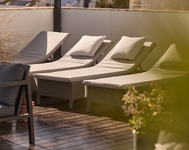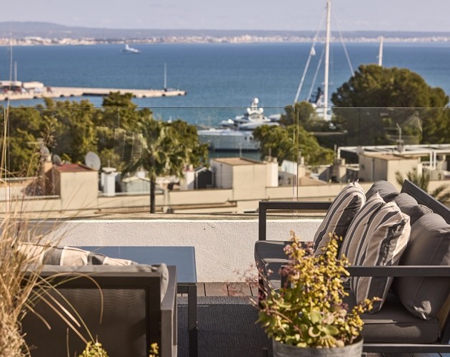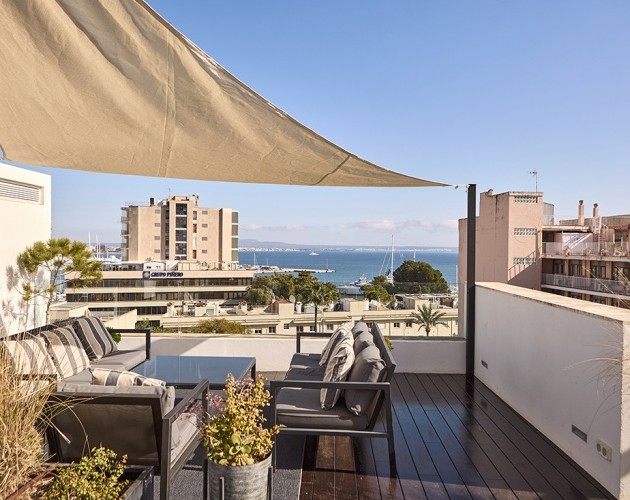 Nuestro rooftop es un espacio único con impresionantes vistas a la bahía de Palma, perfecto para relajarte y disfrutar de la brisa mediterránea. Un rincón ideal para desconectar, compartir momentos especiales o simplemente contemplar los atardeceres sobre el mar.